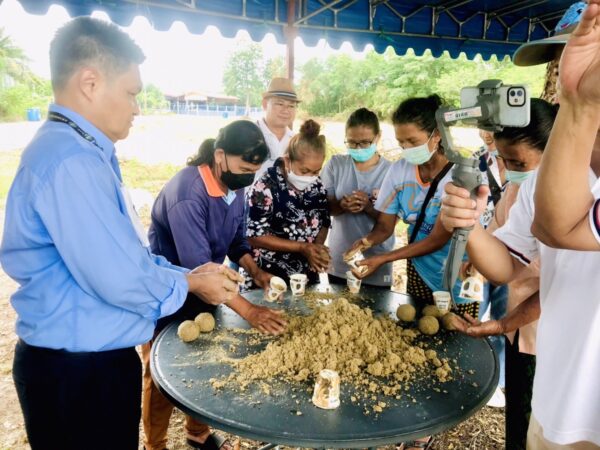 วันนี้ กลุ่มตัวแทนบริษัทฯ และ ประธานวิสาหกิจและกรรมการ ร่วมกันลงพื้นที่ติดตามแปลงปลูกป่าชายเลนแห่งนี้ เพื่อร่วมกันตัดหญ้าวัชพืช ติดตามการเจริญเติบโตเป็นระยะ และ นำปุ๋ยน้ำชีวภาพ ปุ๋ยก้อน ( Super NPK EM Ball ) ไปฝัง โยนให้ปุ๋ย ปรับสภาพดินน้ำเพิ่มออกซิเจนในอากาศ ปรับชีวภาพของระบบนิเวศเพิ่มการระเบิดดินโคลนเพิ่มย่อยสลายให้เหมาะสมแก่การเจริญเติบโต ซึ่ง นายลำเพย แว่วเสียง ประธานวิสาหกิจ และคณะที่ลงพื้นที่ เห็นเป็นที่ประจักษ์ และ แลกเปลี่ยนกันสรุปว่า “ การปลูกป่าชายเลนด้วยวิธีการใช้นวัตกรรมจุลินทรีย์ที่มีประสิทธิภาพ ฯ (Effective Microorganisms) มีการเจริญเติบโตสวยงามและมีการแตกรากแขนงหลักมากแข็งแรงโตเร็วกว่า ต้นไม้ที่เคยปลูกป่าชายเลนมาก่อนหน้านั้นมากมาก และอัตราการรอดมีมากกว่าที่ผ่านมามากทีเดียว ….เพียง 1-2 ปี การเติบโตสูงกว่า 1.20- 1.50 เมตร นายลำเพย แว่วเสียง ประธานวิสาหกิจชุมชนฯ กล่าวว่า