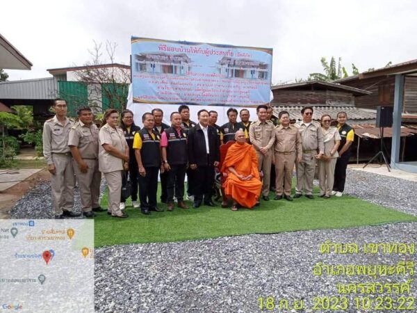 พร้อมคณะผู้บริหาร สมาชิก อบต. พนักงานเจ้าหน้าที่ อบต.เขาทอง ชมรมกำนันผู้ใหญ่บ้านตำบลเขาทอง นำโดยนางสนิด ฉายทอง กำนันตำบลเขาทอง พร้อมด้วยผู้ใหญ่บ้าน ผู้ช่วยผู้ใหญ่บ้าน แพทย์ประจำตำบล สารวัตรกำนัน โรงพยาบาลส่งเสริมสุขภาพตำบลเขาทอง เกษตรประจำตำบลเขาทอง พัฒนากรประจำตำบลเขาทอง สภ.นิคมเขาบ่อแก้ว มหาวิทยาลัยมหิดล นครสวรรค์ โรงเรียนเขาทอง โรงเรียนเขาทองพิทยาคม กลุ่มพ่อค้าคหบดีตำบลเขาทอง มูลนิธิปากน้ำโพประชานุเคราะห์ หน่วยงานราชการและกลุ่มองค์กรในตำบลเขาทอง ร่วมมอบบ้านให้กับผู้ประสบอัคคีภัย จำนวน 2 ราย