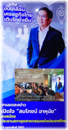 “สมโภชน์ อาหุนัย” ประกาศ! พร้อมนั่งประธาน ส.อ.ท. คนที่ 17 หวังเป็นแกนหลักในการขับเคลื่อนเศรษฐกิจของประเทศ มีเสียงสนับสนุนจากกลุ่มอุตสาหกรรม อยากเห็นการเปลี่ยนแปลง!!!