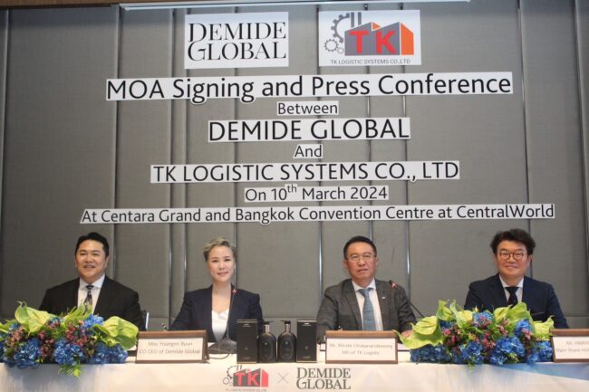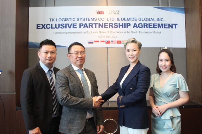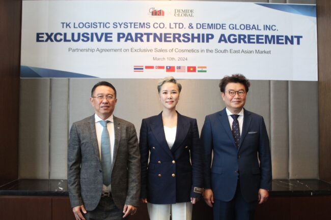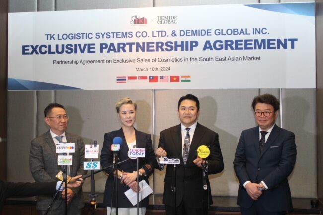 คุณวิโรจน์ โชคณาโรจน์วงศ์ ผู้บริหาร บริษัท ทีเค โลจิสติก ซิสเต็มส์ จำกัด ซึ่งเป็นบริษัทร่วมทุน ระหว่างประเทศไทยและเกาหลีใต้ กล่าวว่า “บริษัทมีเป้าหมายในการเป็นผู้นำด้านการจัดหาและจัดจำหน่ายเครื่องสำอางระดับมืออาชีพในภูมิภาคเอเชีย และข้อตกลงความร่วมมือ พิเศษกับ Demide Global ถือเป็นก้าวสำคัญในการบรรลุเป้าหมายนี้”