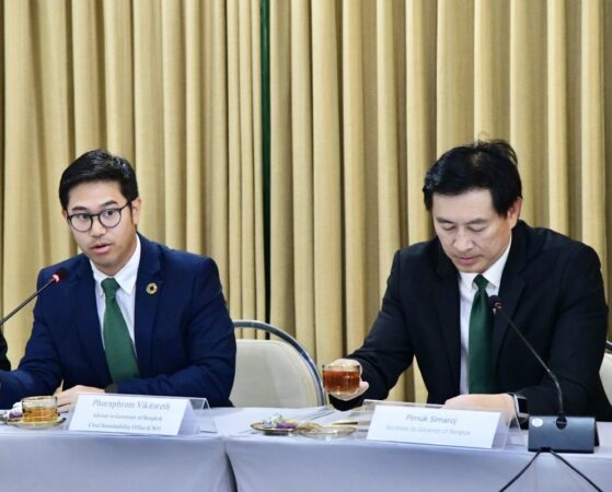 สำหรับการประชุมหารือเมื่อวันที่14มีนาคม2567มีนายชัชชาติ สิทธิพันธุ์ ผู้ว่าราชการกรุงเทพมหานคร นายต่อศักดิ์ โชติมงคล ประธานที่ปรึกษาของผู้ว่าราชการกรุงเทพมหานคร นายพรพรหม วิกิตเศรษฐ์ ที่ปรึกษาของผู้ว่าราชการกรุงเทพมหานคร และผู้บริหารด้านความยั่งยืนของกรุงเทพมหานคร นายภิมุข สิมะโรจน์ เลขานุการผู้ว่าราชการกรุงเทพมหานคร นายไทภัทร ธนสมบัติกุล ผู้อำนวยการสำนักการจราจรและขนส่ง นายประพาส เหลืองศิรินภา ผู้อำนวยการสำนักสิ่งแวดล้อม นางสาวพรรณราย จริงจิตร ผู้อำนวยการสำนักงานการต่างประเทศ และผู้เกี่ยวข้อง ร่วมให้การต้อนรับ คณะสมาคมการค้าไทย-จีนและเศรษฐกิจเอเชีย และผู้บริหารระดับสูงของหน่วยงานรัฐวิสาหกิจจีนด้านพลังงานสะอาด ซึ่งนำโดยนายอลงกรณ์ พลบุตร อดีตรองประธานสภาขับเคลื่อนการปฏิรูปประเทศคนที่หนึ่ง และอดีตรัฐมนตรีช่วยว่าการกระทรวงพานิชย์ หม่อมหลวงสุภาพ ปราโมช ประธานที่ปรึกษากิตติมศักดิ์สมาคมการค้าไทย-จีนและเศรษฐกิจเอเชีย นางสาวประจงจิต พลายเวช รองประธานที่ปรึกษากิตติมศักดิ์สมาคมฯ นางสาวอภิญญา ปราโมช นายกสมาคมฯ นายธัชธรรม พลบุตร และนายเมฆินทร์ เอี่ยมสะอาด กรรมการบริหารมูลนิธิสถาบันพลังงานทางเลือกแห่งประเทศไทย.