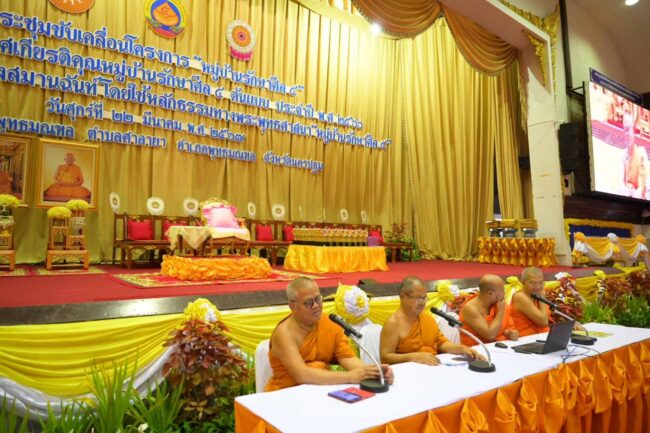 เมื่อวันที่ 22 มี.ค. ที่หอประชุมพุทธมณฑล จ.นครปฐม มีการประชุมขับเคลื่อนโครงการ หมู่บ้านรักษาศีล 5 และพิธีมอบโล่ประกาศเกียรติคุณหมู่บ้านรักษาศีล 5 ต้นแบบ ประจำปี 2566 โดยในช่วงเช้า พระพรหมเสนาบดี เจ้าอาวาสวัดปทุมคงคา กรรมการมหาเถรสมาคม (มส.) เจ้าคณะภาค 7 รองประธานอำนวยการโครงการฯ เป็นประธานเปิดการประชุม จากนั้นมีการชี้แจงแนวทางการขับเคลื่อนหมู่บ้านศีล 5 ในปี 2567 โดย พระธรรมวชิรานุวัตร ประธานคณะกรรมการบริหารกลาง พระเทพเสนาบดี รองประธานคณะกรรมการบริหารกลาง พระศรีสมโพธิ คณะกรรมการบริหารกลาง พระสุธีรัตนบัณฑิต คณะกรรมการบริหารกลาง พระมหาบุญเลิศ อินฺทปญฺโญ คณะกรรมการบริหารกลาง