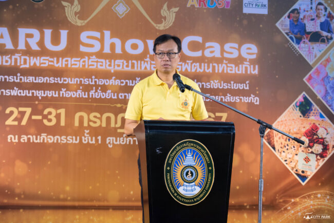 ที่ชั้น 1 หน้าโลตัส ศูนย์การค้าอยุธยาซิตี้พาร์ค รองศาสตราจารย์ ดร.ชูสิทธิ์ ประดับเพ็ชร์ อธิการบดีมหาวิทยาลัยราชภัฏพระนครศรีอยุธยา เป็นประธานในพิธีเปิด “โครงการนําเสนอกระบวนการนำองค์ความรู้ทางวิชาการไปสู่การใช้ประโยชน์ ในการพัฒนาชุมชน ท้องถิ่น ที่ยั่งยืน ตามแผนยุทธศาสตร์มหาวิทยาลัยราชภัฏ ARU Show Case (ราชภัฏพระนครศรีอยุธยาเพื่อการพัฒนาท้องถิ่น)”