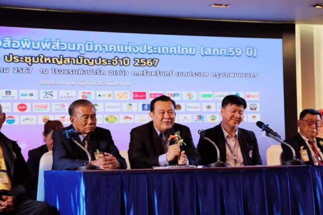 วันเสาร์ที่ 31 สิงหาคม 2567 เวลา 13.00 น. ณ โรงแรมคิงปาร์ค อเวนิว ศรีนครินทร์ กรุงเทพฯ นายอนันต์ นิลมานนท์ นายกสมาคมหนังสือพิมพ์ส่วนภูมิภาคแห่งประเทศไทย พร้อมคณะกรรมการบริหาร เปิดการประชุมใหญ่สามัญประจำปี 2567 แถลงกิจกรรมในรอบปี