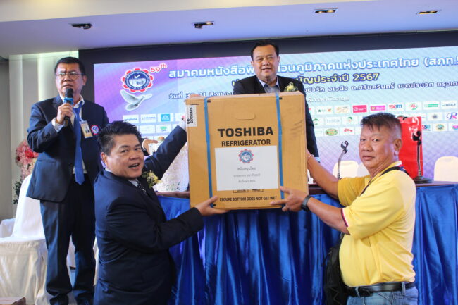 จากนั้น สมาคมฯ จัดให้มีการจับสลากรางวัล 59 ชิ้น ในโอกาสที่สมาคมหนังสือพิมพ์ส่วนภูมิภาคประเทศไทย ครบรอบ 59 ปี ซึ่งกิจกรรมการจับสลากลุ้นรางวัลสำหรับสมาชิกสมาคม จัดขึ้นเป็นประจำนับเป็น 10 ปีมาแล้ว ด้วยความคิดริเริ่มจาก “นายยุทธนา หยิมการุณ” อุปนายกฝ่ายบริหารสมาคมหนังสือพิมพ์ส่วนภูมิภาคแห่งประเทศไทย ผู้ใหญ่ใจดีท่านนี้ ที่ให้การสนับสนุนกิจกรรมที่สำคัญให้กับสมาคมหนังสือพิมพ์ส่วนภูมิภาคฯ ตลอดมา ทั้งนี้ เพื่อให้เกิดขวัญและกำลังใจ เพิ่มความสนุกให้กับสมาชิกสมาคมที่มาร่วมในการประชุมใหญ่ของสมาคมทุกๆ ปี และปีนี้ก็ได้มอบทีวีขนาด 55 นิ้ว เครื่องใช้ไฟฟ้าอเนกประสงค์ที่มีคุณค่าเป็นจำนวนมากมาร่วมสนุก พร้อมด้วย บมจ.ทรู คอร์ปอเรชั่น, บจก.สแกนเนอร์ อิเลคทริค อินเตอร์เนชั่นแนล ผลิตภัณฑ์เครื่องใช้ไฟฟ้า Misushita, บจก.เอ็นไอพี อิเลคทริค, บจก.พรสยาม เทรดดิ้ง และผู้ใหญ่ใจดีอีกหลายท่านที่ไม่ได้เอ่ยนาม ร่วมนำของขวัญ ของรางวัลที่มีคุณค่ามาร่วมให้ทางสมาชิกได้ร่วมสนุกจับลุ้นรางวัล ซึ่งเป็นกิจกรรมต่อเนื่องที่สมาคมได้ทำกันมาตลอด