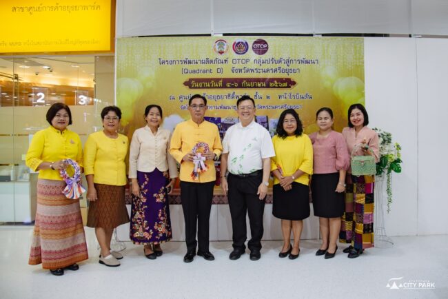 จัดแสดงและจำหน่ายสินค้าผลิตภัณฑ์ OTOP ผ่านการจัดกิจกรรมพัฒนาผลิตภัณฑ์ OTOP กลุ่มปรับตัวสู่การพัฒนา (Quadrant D) และกิจกรรมการส่งเสริมกระบวนการเครือข่ายองค์ความรู้ (Knowledge – Based OTOP : KBO) จังหวัดพระนครศรีอยุธยา เพื่อพัฒนาทักษะผู้ประกอบการ OTOP และเพิ่มโอกาสช่องทางการตลาด พร้อมยกระดับเครือข่ายองค์ความรู้ KBO ให้มีศักยภาพเพิ่มมากขึ้น โดยมี คุณคเชนทร์ชัย แพงจันทร์ พัฒนาการจังหวัดพระนครศรีอยุธยา เป็นประธานในพิธีเปิดกิจกรรม พร้อมด้วย ดร.สมพล รัชตพิมลชัย ประธานเจ้าหน้าที่บริหารการตลาด ศูนย์การค้าอยุธยาซิตี้พาร์ค ร่วมงาน