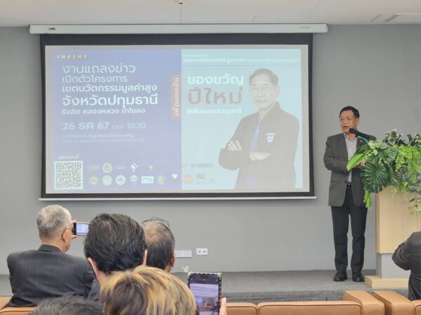 ดร.สุทัด ครองชนม์ สมาคมไทยIOT นายนิติ เมฆหมอก ผู้ก่อตั้งและผู้บริหารบริษัทSynergy ดร.วรพจน์ กันตพิพัฒน์ รองนายกสมาคมอสังหาริมทรัพย์ไทยและหน่วยงานรัฐภาคเอกชนภาควิชาการอื่นๆเช่น สวทช. วว. DEPA หอการค้าจังหวัด กรอ.จังหวัด สมาคมการผังเมืองไทย สมาคมwellnessไทย ผู้แทนมหาวิทยาลัยธรรมศาสตร์ มหาวิทยาลัยกรุงเทพ มหาวิทยาลัยเกษตรศาสตร์ บริษัทสตาร์ทอัพด้านเทคโนโลยีและนวัตกรรม ฯลฯ.โดยนายอลงกรณ์กล่าวถึงวิสัยทัศน์และนโยบายคาร์บอนต่ำลดโลกร้อนและการพัฒนาเมืองแบบยั่งยืนและน่าอยู่(Sustainable & Liveable city)เพื่อคุณภาพชีวิตของประชาชนและคุณภาพเมืองของรัฐมนตรีว่าการกระทรวงทรัพยากรธรรมชาติและสิ่งแวดล้อม ดร.เฉลิมชัย ศรีอ่อนโดยเฉพาะจังหวัดปทุมธานีเป็นเมืองปริมณฑลที่กำลังขยายตัวในทุกด้านอย่างรวดเร็วมีผลกระทบต่อสิ่งแวดล้อมทั้งมลภาวะทางอากาศ น้ำเสียและขยะจึงต้องใช้องค์ความรู้ เทคโนโลยีและนวัตกรรมเพื่อแก้ปัญหาและรับมือในอนาคตคู่ขนานไปกับกับการพัฒนาเมืองและเขตนวัตกรรมมูลค่าสูง จุดเด่นของปทุมธานีคือเป็นที่ตั้งของหน่วยงานด้านวิจัยและพัฒนาสำคัญของประเทศเช่น สวทช. วว. Science Park มหาวิทยาลัยธรรมศาสตร์ สถาบันเอไอที มหาวิทยาลัยกรุงเทพ ฯลฯจะเป็นกำลังสำคัญในการพัฒนาเขตนวัตกรรมมูลค่าสูง