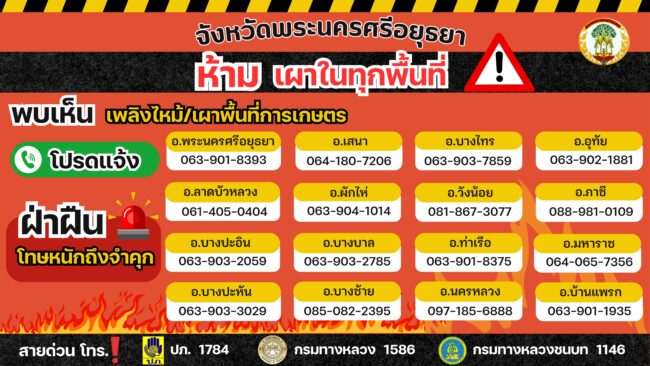 จังหวัดพระนครศรีอยุธยา 📣ห้ามเผาในที่โล่งทุกชนิดในพื้นที่จังหวัดพระนครศรีอยุธยา.
