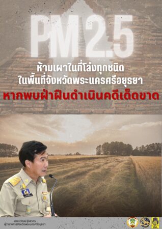 และเพื่อเป็นการป้องกันผลกระทบ ต่อสุขภาพประชาชน จึงให้ประกาศห้ามเผาในที่โล่งทุกชนิดในพื้นที่จังหวัดพระนครศรีอยุธยา โดยอาศัยอำนาจตามมาตรา 15 มาตรา 21 มาตรา 22 และมาตรา 29 แห่งพระราชบัญญัติป้องกันและบรรเทาสาธารณภัยพ.ศ. 2550 จึงประกาศห้ามเผาในที่โล่งทุกชนิดในพื้นที่จังหวัดพระนครศรีอยุธยา โดยกำหนดมาตรการและแนวทางปฏิบัติ ดังนี้