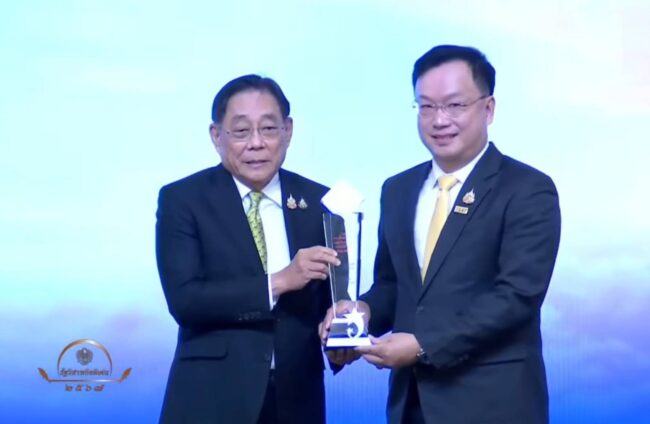 โดยมีนายเทพรัตน์ เทพพิทักษ์ ผู้ว่าการการไฟฟ้าฝ่ายผลิตแห่งประเทศไทย (กฟผ.) เข้ารับรางวัลการดำเนินงานเพื่อสังคมและสิ่งแวดล้อมดีเด่นจากโครงการพัฒนาโครงข่ายไฟฟ้าอัจฉริยะ ต.ผาบ่อง อ.เมือง จ.แม่ฮ่องสอน และนายธวัชชัย สำราญวานิช รองผู้ว่าการยุทธศาสตร์ รับมอบรางวัลความคิดสร้างสรรค์และนวัตกรรมดีเด่น (ด้านนวัตกรรม) จากผลงาน “ระบบบริหารจัดการพลังงานสำหรับรองรับรูปแบบการผลิตไฟฟ้าในอนาคต ERC Sandbox และ Enzy Platform” ณ ตึกสันติไมตรี ทำเนียบรัฐบาล