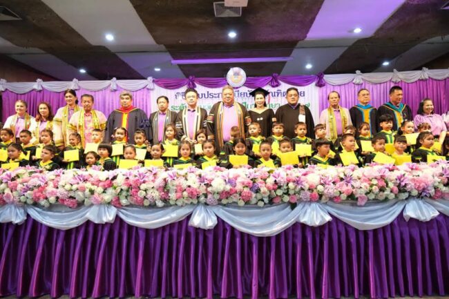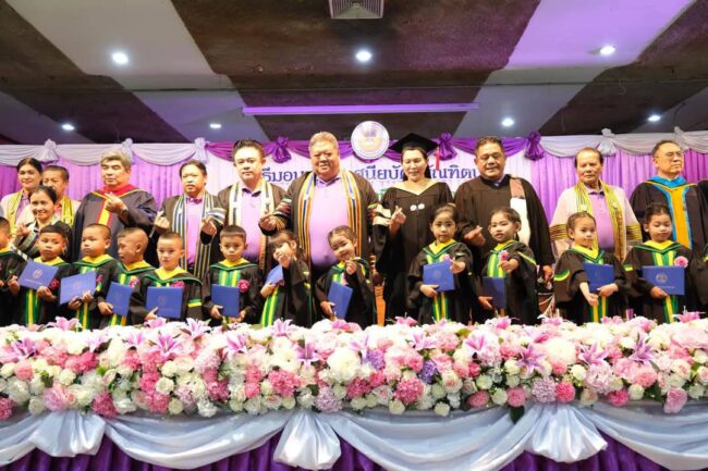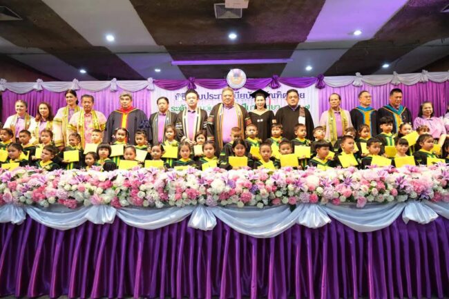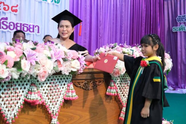 ว่าที่ร้อยตรี ดร.สมทรง สรรพโกศลกุล นายกเทศมนตรีนครพระนครศรีอยุธยา ประธานในพิธีมอบวุฒิบัตรให้แก่นักเรียนระดับอนุบาลที่สำเร็จการศึกษา ประจำปี 2567 โดยมี