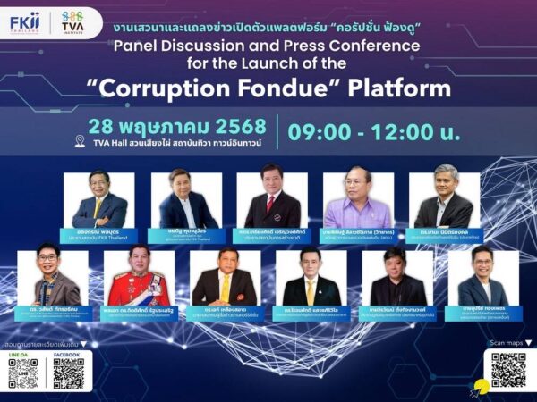 เมื่อวันที่ 28 พฤษภาคม 2568 ที่ผ่านมา ดร.โรจนศักดิ แสงธศิริวิไล นายกสมาคมเครือข่ายผู้สื่อข่าวและสื่อมวลชนนานาชาติ ร่วมงานเสวนาและแถลงข่าวเปิดตัวแพลตฟอร์มคอรัปชั่น ฟ้องดู (Corruption Fondue นายอลงกรณ์ พลบุตร ประธานสถาบัน FKII Thailand นายชยดิฐ หุตานุวัชร์ ประธานสถาบันทิวา และผู้อำนวยการสถาบัน FKII Thailand พร้อมด้วยหน่วยงานพันธมิตร ร่วมงานเสวนาและแถลงข่าวเปิดตัวแพลตฟอร์มคอรัปชั่น ฟ้องดู (Corruption Fondue) ซึ่งพัฒนาต่อยอดจาก Traffy Fondue ของสำนักงานพัฒนาวิทยาศาสตร์และเทคโนโลยีแห่งชาติ (สวทช.) โดยมีวัตถุประสงค์เพื่อเป็นช่องทางในการแจ้งเบาะแสเรื่องการคอรัปชั่นในทุกรูปแบบที่หยั่งรากลึกลงในสังคมไทย ฉุดรั้งการพัฒนาประเทศทั้งด้านทางเศรษฐกิจและสังคม