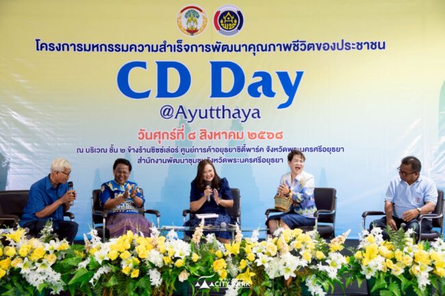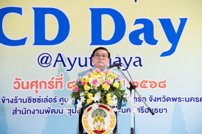 สำนักงานพัฒนาชุมชนจังหวัดพระนครศรีอยุธยา จัดโครงการ “มหกรรมความสำเร็จการพัฒนาคุณภาพชีวิตของประชาชน CD Day @Ayutthaya” เพื่อเผยแพร่ผลสำเร็จการพัฒนาคุณภาพชีวิตของประชาชน และเสริมสร้างชุมชนเข้มแข็ง ส่งเสริมการเพิ่มช่องทางการตลาดของผู้ผลิต ผู้ประกอบการ และเครือข่ายธุรกิจชุมชน รวมทั้งสร้างแรงบันดาลใจให้ทุกภาคส่วนร่วมพัฒนาชุมชนอย่างยั่งยืน เสริมเศรษฐกิจฐานรากและลดความเหลื่อมล้ำในพื้นที่
