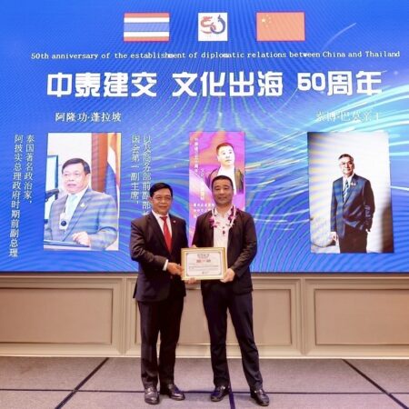 เสมือนฑูตวัฒนธรรมสานสัมพันธ์”ไทย-จีน“อย่างยั่งยืนยาวนานและชื่นชมสมาคมการค้าไทย-จีนฯและพิพิธภัณฑ์หงหูจัดนิทรรศการศิลปะภาพวาดพู่กันจีนฉลองมิตรภาพ50ปี2ชาติ