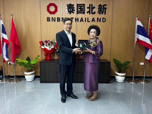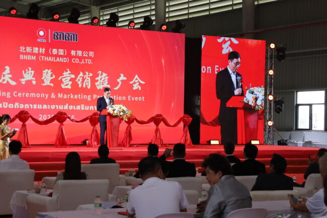 จีนและไทยเป็นเพื่อนบ้านที่ดี มีสายสัมพันธ์แน่นแฟ้น และเป็นคู่ค้า ปีนี้เป็นโอกาสครบรอบ 50 ปี การสถาปนาความสัมพันธ์ทางการทูตจีน–ไทย ในปีประวัติศาสตร์นี้ Beijing New Materials และ Sinoma ได้ร่วมลงทุนก่อสร้างฐานผลิตแผ่นยิปซั่มในประเทศไทยอย่างเป็นทางการ ซึ่งถือเป็นความหมายพิเศษ ไม่เพียงแต่เป็นพยานของความร่วมมือทางเศรษฐกิจและการค้าระหว่างจีน–ไทย แต่ยังเป็นของขวัญอันจริงใจเนื่องในโอกาสครบรอบ 50 ปีความสัมพันธ์ China National Building Material Group เป็นบริษัทผู้ผลิตวัสดุอโลหะและลงทุนทางด้านทุนที่มีความสามารถแข่งขันระดับโลก ติดอันดับ Fortune Global 500 ติดต่อกัน 15 ปี มีแพลตฟอร์มวิจัยและพัฒนาวัสดุอโลหะที่เข้มแข็ง และโซ่อุตสาหกรรมที่ครบวงจร เป็นผู้นำด้านนวัตกรรมทางเทคโนโลยี อุตสาหกรรม และการขยายสู่สากลของอุตสาหกรรมวัสดุอโลหะของจีน ในช่วงหลายปีที่ผ่านมา CNBM ยึดถือปรัชญา “胸怀天下” และมุ่งมั่นตามพันธกิจของบริษัท “วัสดุสร้างโลกที่ดียิ่งขึ้น” เร่งรัดการขยายธุรกิจไปต่างประเทศใน 10 ปี ด้วยการดำเนินงานเต็มรูปแบบทุกขั้นตอนทุกองค์ประกอบ เพื่อมอบผลิตภัณฑ์ เทคโนโลยี อุปกรณ์ และบริการชั้นหนึ่งให้แก่ลูกค้าทั่วโลกตลาดเอเชียตะวันออกเฉียงใต้ โดยเฉพาะประเทศไทย มีความสำคัญอย่างยิ่ง ประเทศไทยตั้งอยู่ใจกลางอาเซียน เป็นจุดยุทธศาสตร์สำคัญของโครงการ Belt and Road ด้วยสภาพแวดล้อมทางสังคมที่มั่นคงบรรยากาศทางธุรกิจที่ดี และศักยภาพตลาดอันมหาศาล จึงเป็นพื้นที่ที่เอื้อต่อการพัฒนาของ CNBM และสมาชิกในเครือหลายบริษัทรวมถึง Beijing New Materials เราให้ความสำคัญกับตลาดไทย เลือกลงทุนและตั้งฐานการผลิตที่นี่เพราะมองเห็นข้อได้เปรียบเชิงภูมิศาสตร์ เวลาและสภาพแวดล้อม และความร่วมมือของผู้คนการก่อสร้างและเริ่มดำเนินงานของ Beijing New Materials Thailand Base ถือเป็นหลักชัยสำคัญสำหรับเรา
