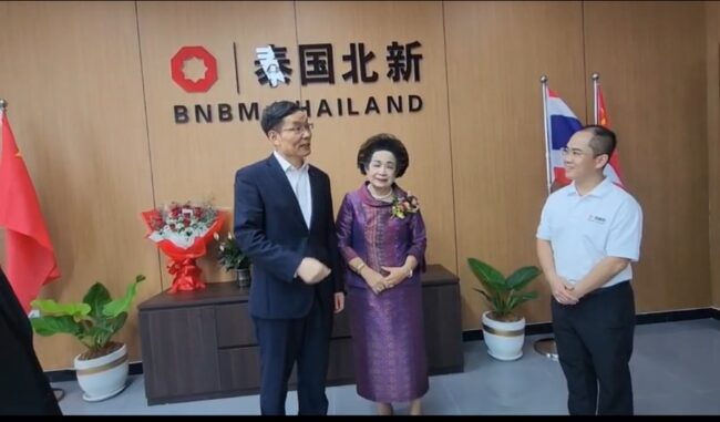 วันที่ 26 สิงหาคม 2568 ณ อุตสาหกรรมโรจนะพื้นที่อำเภออุทัยจังหวัดพระนครศรีอยุธยาในโอกาสครบรอบ 50 ปีแห่งความสัมพันธ์ทางการทูตไทย-จีน ซึ่งตลอดระยะ เวลาห้าทศวรรษทั้งสอง ประเทศได้ร่วมมือและไว้เนื้อเชื่อใจกันอย่างแน่นแฟ้นทั้งในด้านการเมือง เศรษฐกิจ และวัฒนธรรม อันก่อให้เกิดผลสำเร็จอย่าง เป็นรูปธรรมด้วยมิตรภาพอันดีระหว่างไทย-จีน กลุ่มบริษัท CHINA NATIONAL BUILDING MATERIAL GROUP ให้ความสำคัญกับการพัฒนาธุรกิจ ในประเทศไทยอย่างยิ่ง บริษัทบีเอ็นบีเอ็ม (ประเทศไทย) จำกัด ซึ่งเป็น บริษัทษัท ในเครือได้ดำเนินการผลิตอย่างเป็นทางการในประเทศไทยถือเป็นก้าวสำคัญในการยกระดับวัสดุก่อสร้าง ในภูมิภาคเอเซีย ตะวันออกเฉียงใต้ และเสริมสร้างความ ร่วมมือด้านวัสดุก่อสร้างสีเขียวระหว่างไทย-จีนให้แน่นแฟ้นยิ่งขึ้นพร้อมร่วมขับเคลื่อนยุทธศาสตร์ “หนึ่งแถบหนึ่งเส้นทาง” สู่ความสำเร็จร่วมกันภายในงานครั้งนี้โดยมีผู้มีเกียรติทั้งหน่วยข้าราชการและในพื้นที่นักธุรกิจทั้งชาวจีนและชาวไทยได้มาร่วมพิธีการเปิดโรงงานในครั้งนี้ โดยมีการส่งเสริมเศรษฐกิจ และเป็นการจับมือการผลผลิต แผ่นยิปซั่มทางรัฐบาลจีนและไทยเพื่อเป็นการร่วมมือเสริมสร้างเศรษฐกิจให้ก้าวไกลไปทั่วโลกซึ่งในการเปิดงานมีแขกผู้มีเกียรติหลายคนเข้าร่วมงานการเปิดในครั้งนี้ด้วยนอกจากนั้นยังมี