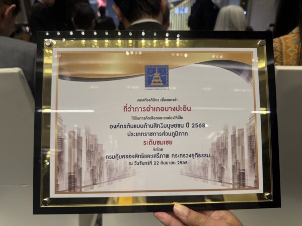 กรุงเทพฯ – นายอำเภอบางปะอิน เข้ารับมอบรางวัล ”Human Rights Awards 2025“ องค์กรต้นแบบด้านสิทธิมนุษยชน ประเภทองค์กรภาครัฐ ระดับภูมิภาค ประจำปี 2568 หนึ่งเดียวในส่วนภูมิภาค จาก 878 อำเภอ ทั่วประเทศ