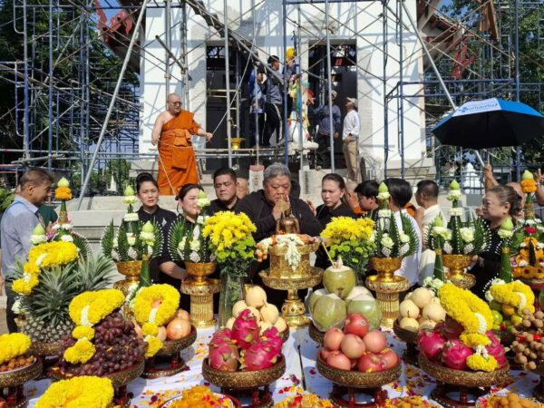 อยุธยา – นายกเทศมนตรีนครพระนครศรีอยุธยาร่วมพิธีบวงสรวงยกช่อฟ้า พระวิหารหลวงพ่อแขนลาย และร่วมมุทิตาสักการะ เนื่องในโอกาสอายุวัฒนมงคล 70 ปี พระวชิโรภาส (ประดิษฐ์ ฐานิโก) รองเจ้าคณะจังหวัดพระนครศรีอยุธยา