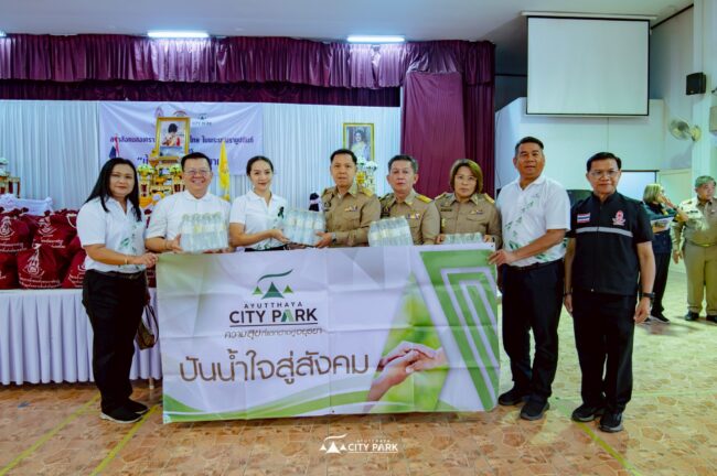 ศูนย์การค้าอยุธยาซิตี้พาร์ค ร่วมกับ สภาสังคมสงเคราะห์แห่งประเทศไทย ในพระบรมราชูปถัมภ์ และมูลนิธิมิราเคิล ออฟไลฟ์ ส่งต่อความห่วงใยและกำลังใจแก่ผู้ที่ได้รับผลกระทบจากอุทกภัยในพื้นที่ อำเภอบางบาล จังหวัดพระนครศรีอยุธยา มอบถุงยังชีพ ตามโครงการ “น้ำพระทัยพระราชทาน”, โครงการ “หนึ่งใจ…ช่วยเหลือผู้ประสบภัย” และน้ำดื่มอยุธยาซิตี้พาร์ค จำนวน 6,000 ขวด เพื่อช่วยบรรเทาความเดือดร้อน