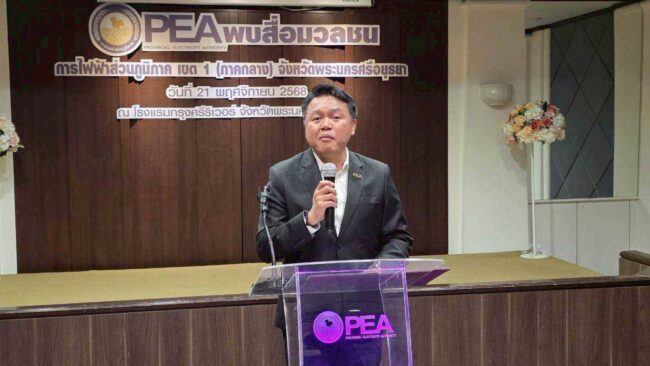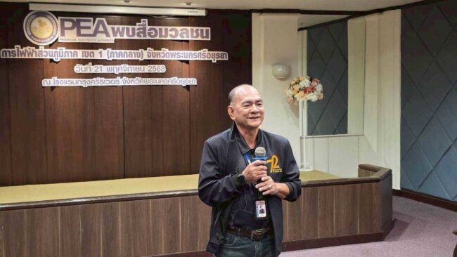 วันที่ 21 พฤศจิกายน 2568 นายอารมณ์ สิงห์เงิน ผู้ช่วยผู้ว่าการการไฟฟ้าส่วนภูมิภาค เขต 1 (ภาคกลาง) จังหวัดพระนครศรีอยุธยา เป็นประธานเปิดกิจกรรม “PEA พบสื่อมวลชน” ในพื้นที่จังหวัดพระนครศรีอยุธยา