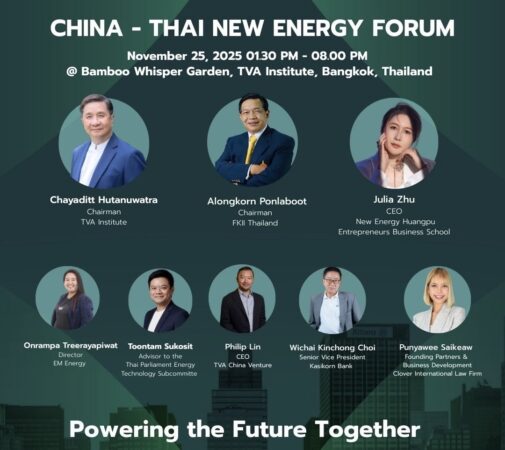 นายอลงกรณ์ พลบุตร ประธานสถาบัน FKII Thailandและผู้ก่อตั้งมูลนิธิสถาบันพลังงานทางเลือกแห่งประเทศไทย ผู้ได้รับฉายา”มิสเตอร์เอทานอล”กล่าวปาฐกถาพิเศษในฟอรั่ม”พลังงานใหม่ จีน-ไทย“(China-Thai New Energy Forum) ณ TVA Hall สวนเสียงไผ่ โดย TVA China Venture ในเครือ TVA Corporation (สถาบันทิวา) ภายใต้การนำของ คุณชยดิฐ หุตานุวัชร์ ประธาน TVA ซึ่งมุ่งผลักดันบทบาทของไทยในฐานะศูนย์กลางการลงทุนด้านพลังงานใหม่ของอาเซียน ผ่านเวทีการหารือเชิงลึกระหว่างภาคธุรกิจไทยและจีน ร่วมกับ New Energy Huangpu (ประเทศจีน) ที่มี Julia Zhu Lina เป็นประธาน โดยได้บรรลุข้อตกลงความร่วมมือระหว่างไทยและจีนในการเชื่อมโยงธุรกิจพลังงานแห่งอนาคต