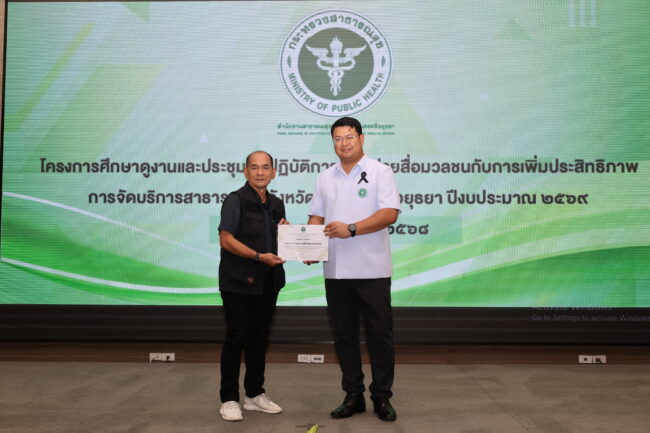 เมื่อวันที่ 1 ธันวาคม 2568 นพ.ชวนนท์ อิ่มอาบ นายแพทย์สาธารณสุขจังหวัดพระนครศรีอยุธยา ประธานเปิดโครงการศึกษาดูงานและประชุมเชิงปฏิบัติการเครือข่ายสื่อมวลชนกับการเพิ่มประสิทธิภาพการจัดบริการสาธารณสุข จังหวัดพระนครศรีอยุธยา และมอบนโยบายการดำเนินงานสำนักงานสาธารณสุขจังหวัดพระนครศรีอยุธยา