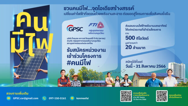 #เดย์ไทม์นิวส์ออนไลน์ GPSC ร่วมกับ กลุ่มอุตสาหกรรมพลังงานหมุนเวียน สภาอุตสาหกรรมแห่งประเทศไทย จัดโครงการ “คนมีไฟ” เพื่อติดตั้งระบบผลิตไฟฟ้าพลังงานแสงอาทิตย์ ฟรี!!!! มูลค่ารวมกว่า 20 ล้านบาท 06/08/2023 daytimenewsonline #เดย์ไทม์นิวส์ออนไลน์ GPSC ร่วมกับ กลุ่มอุตสาหกรรมพลังงานหมุนเวียน สภาอุตสาหกรรมแห่งประเทศ… Read More