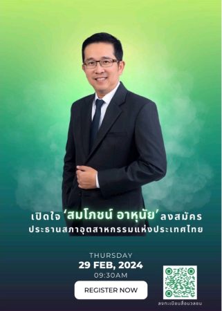 #เดย์ไทม์นิวส์ออนไลน์ “สมโภชน์ อาหุนัย” ประกาศ! พร้อมนั่งประธาน ส.อ.ท. คนที่ 17 หวังเป็นแกนหลักในการขับเคลื่อนเศรษฐกิจของประเทศ มีเสียงสนับสนุนจากกลุ่มอุตสาหกรรม อยากเห็นการเปลี่ยนแปลง!!!