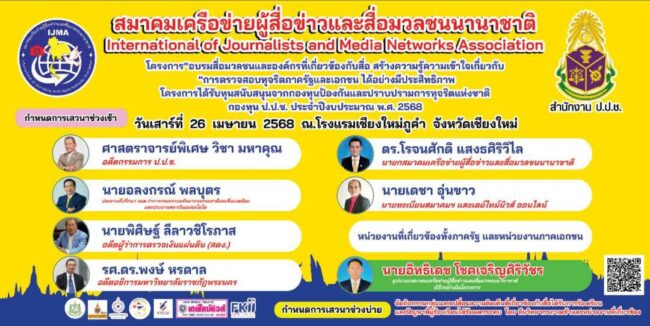 Read More#เดย์ไทม์นิวส์อออนไลน์ เชียงใหม่ – สมาคมเครือข่ายผู้สื่อข่าวและสื่อมวลชนนานาชาติ จัดโครงการอบรมสื่อมวลชนและองค์กรที่เกี่ยวข้องกับสื่อสร้างความรู้ความเข้าใจเกี่ยวกับการตรวจสอบทุจริตภาครัฐและเอกชน